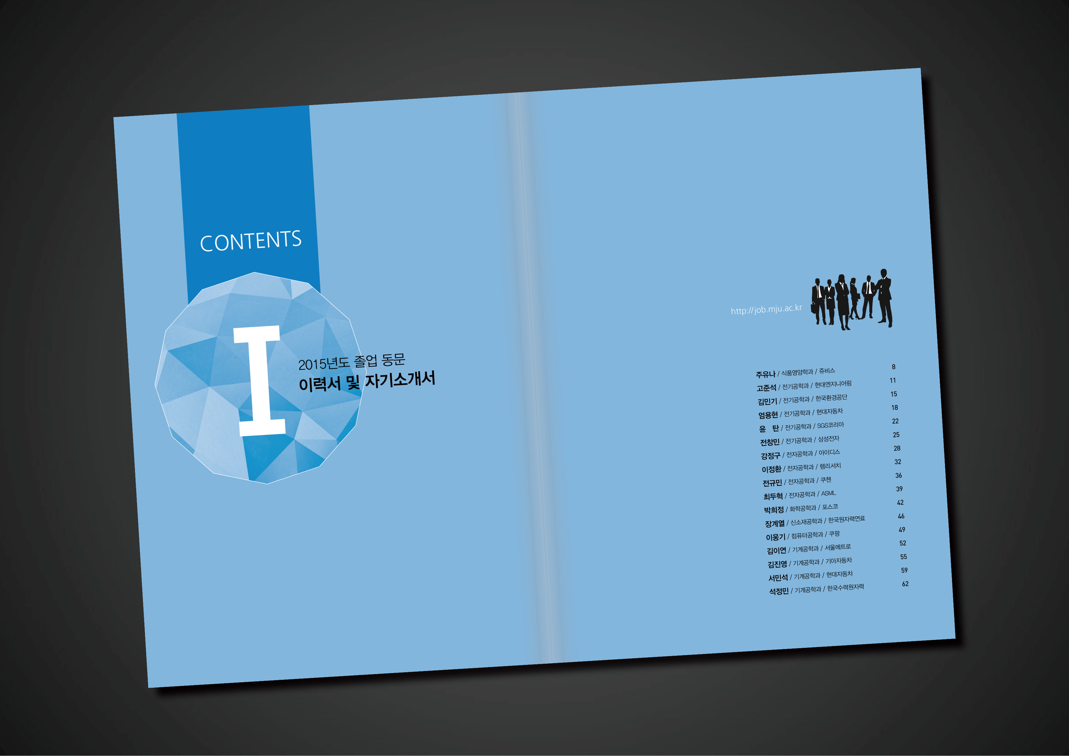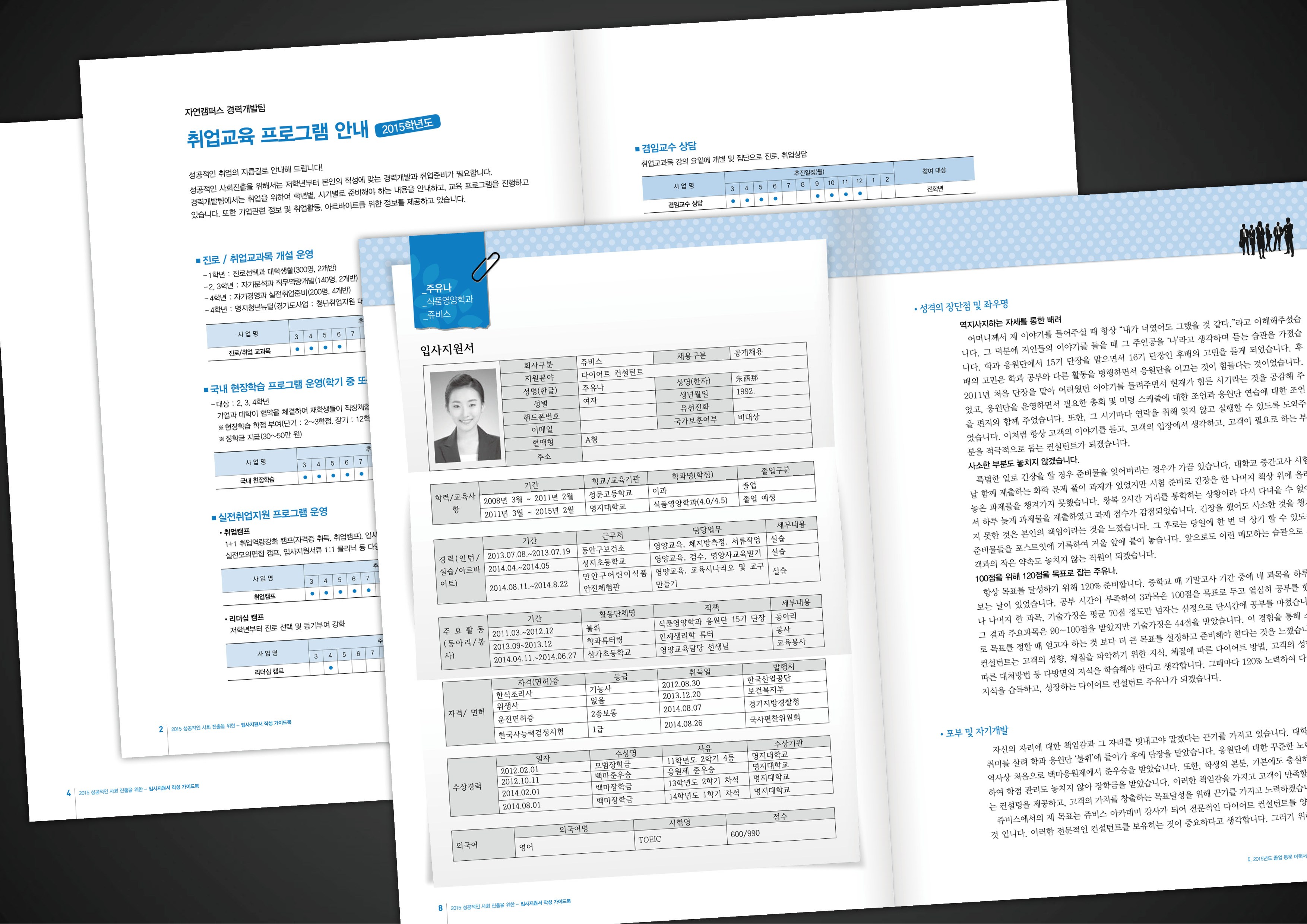 년사 및 서적류 개발 명지대학교 입사지원서 작성 가이드북(2015) A3대장 2022. 10. 28. 08:46 작업범위: 편집디자인, 조판, 제작, 납품 저작자표시 비영리 변경금지 (새창열림)